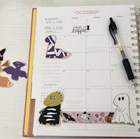 set of 6 halloween themed dinosaur stickers printed on matte vinyl.